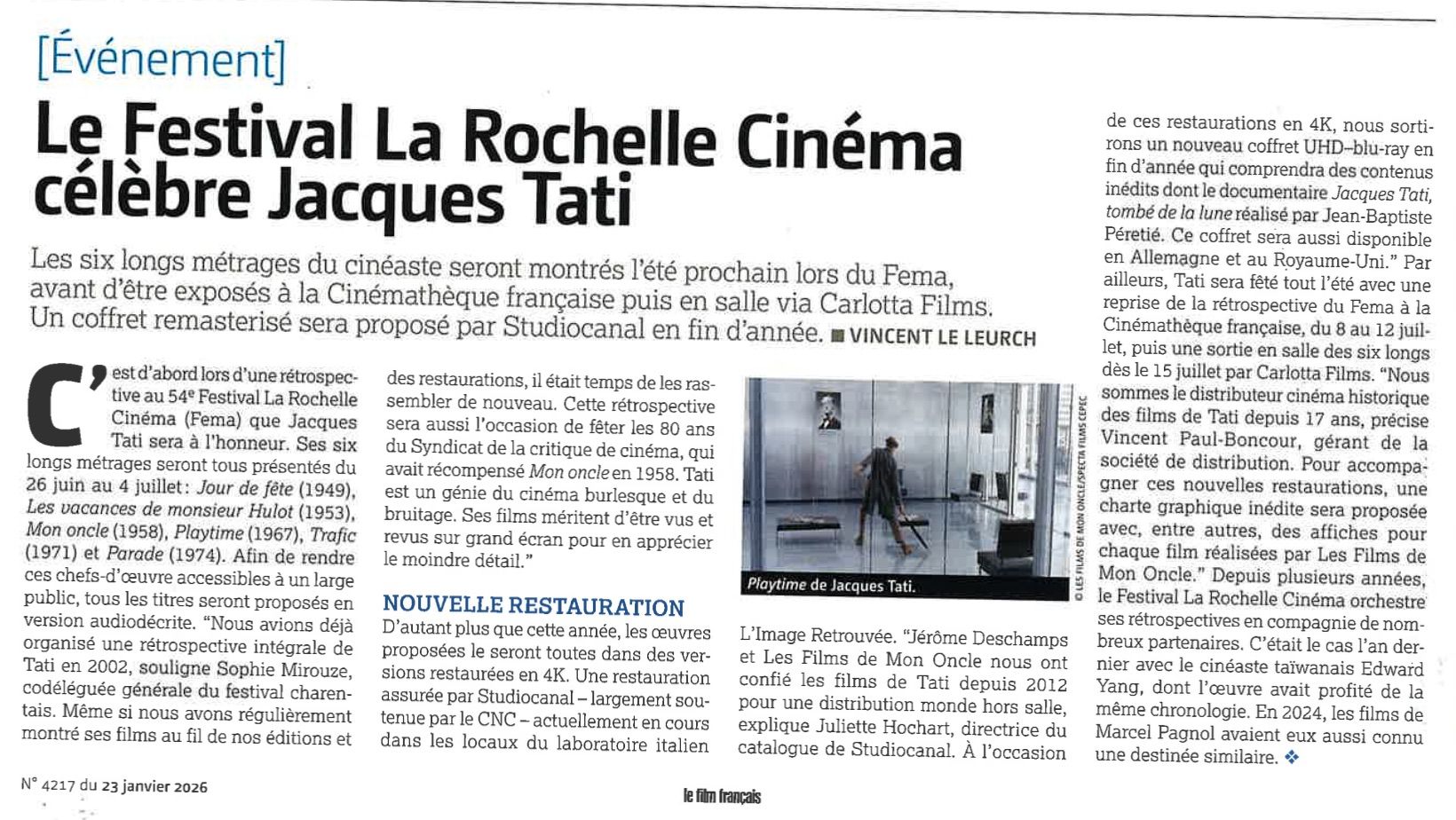 - 28.01 — Le Film Français Le festival La Rochelle Cinéma célèbre Jacques Tati